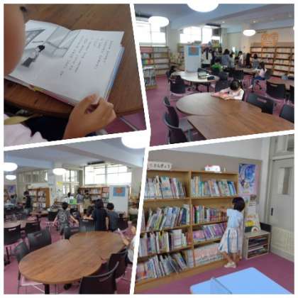 15分休みの時間に図書委員会の人たちが、図書室開放を行っています。開放では、委員会の人たち行う貸し出しを利用したり、読書を楽しんだりしています。いつもたくさんの人が、開放を利用しています。