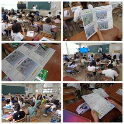 3年生が大阪市の学習のひとつとして、あべのハルカスに行きました。大阪市で最も高い場所から、市内の様子を観察しました。いつもより高い場所から見る景色に、驚きの声があがっていました。帰校後の5時間目には、各教室で見学のまとめに取り組みました。