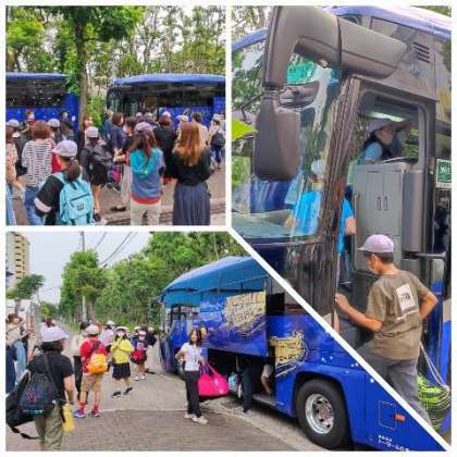 バスに乗車して、出発です。保護者のみなさま、お見送りありがとうございます。