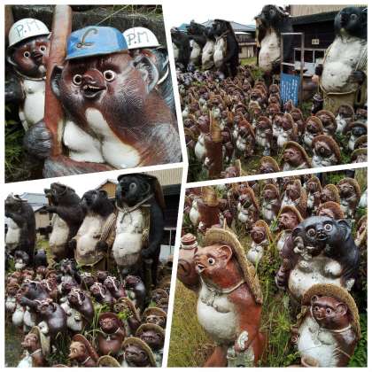最初の活動場所である宗陶苑に到着しました。さすがに信楽の地です。驚くほどたくさんのタヌキがお出迎えです。