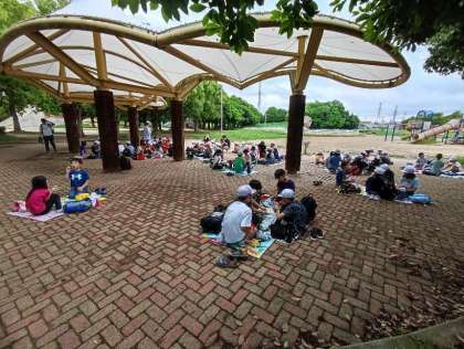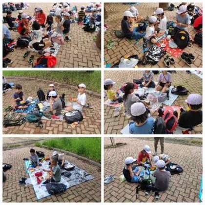 みんなで活動した後は、これもお楽しみのお弁当タイムです。グループで楽しく食べました。