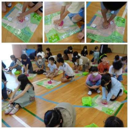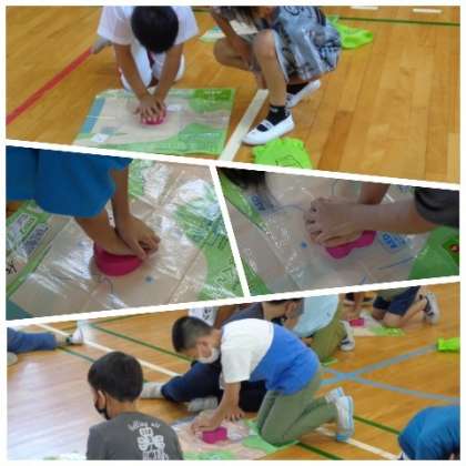 5・6年生では、心肺蘇生法について学習しました。うまくできると音が出るハート型の器具を使用して、心臓マッサージの体験をしました。