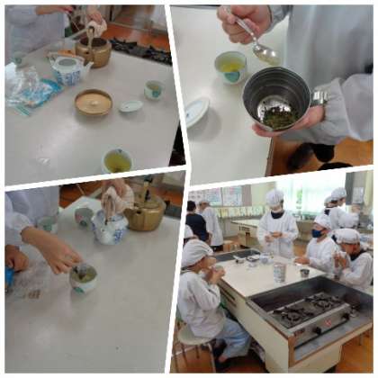 家庭科は5年生から新たに始まる学習です。本日(6月20日)5年生が家庭科の学習として、実習に取り組んでいました。内容は、お湯を沸かしてお茶をいれ、みんなで飲むというものでした。熱い熱いと言いながら、自分たちで入れたお茶をおいしそうに飲んでいました。