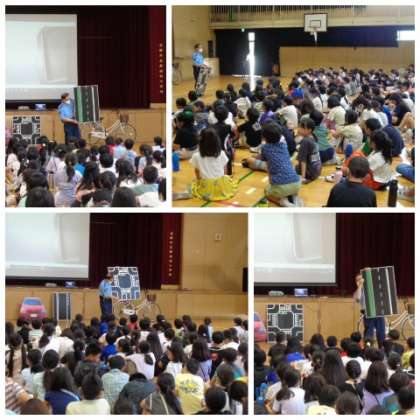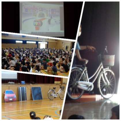 後半は4〜6年生が対象の指導でした。内容は、自転車の正しい乗り方や利用するときに気をつけることなどが中心でした。子どもが運転する自転車であっても、過失を伴う事故を起こした場合は、自動車による事故などと同様の責任が生じることなどを教えていただきました。