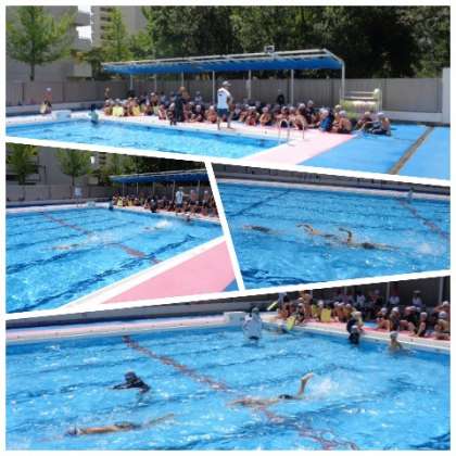 夏本番を思わせる日差しのもと、3年生の水泳学習がありました。泳げる距離を伸ばすために、繰り返し練習に取り組んでいました。