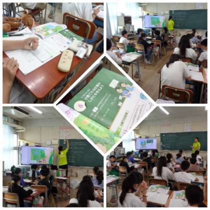5年生が算数の学習で、小数でわる計算に取り組んでいました。問題場面から立式し、計算方法について見通しを立てて考えていました。