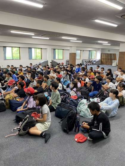 飯ごう炊も終わり、部屋に戻って片づけをした後は、閉舎式になります。2日間お世話になった宿舎の方々に感謝の思いを伝えます。閉舎式を終えると、大阪に向け帰路につきます。