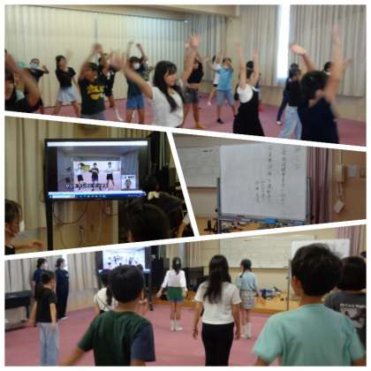 上段は、保健委員会の様子です。運動会の整理体操で行う「姿勢体操」を練習していました。