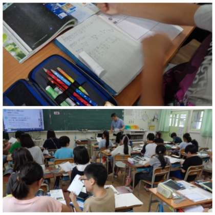 4年生は現在理科で「月や星の動き」について学習しています。時間経過による星の位置やならび方の変化について観察する方法を、動き方の予想をたてながら考えていました。