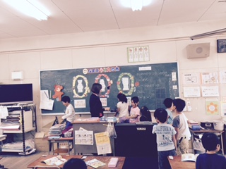 1年生の子どもたちは、栄養教諭の方から食物についての知識を学んでいます。
