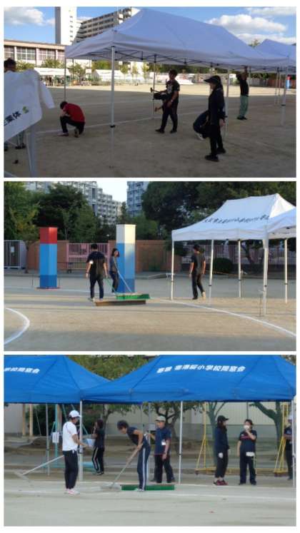 6年生の子どもたちが下校した後は、教職員での準備になります。明日の運動会に向け、最終確認を行いながら、作業に取り組みました。