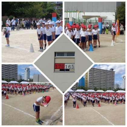 閉会式の様子です。今年の運動会は接戦でした。わずか5点の僅差で赤組が勝利しました。