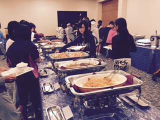 夕食は子どもたちが楽しみにしていたバイキングです。美味しい食事に子どもたちは大満足です。