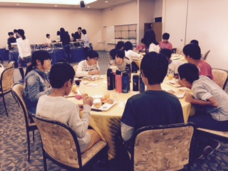 朝食もバイキングでした。みんな食欲もありモリモリ食べていました。