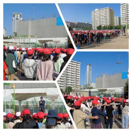 過ごしやすい気候になってきたので、運動場で行う児童朝会を再開しました。今週の朝会では、校長先生からの安全を意識した生活のお話と係の先生からの10月の生活目標についての話がありました。