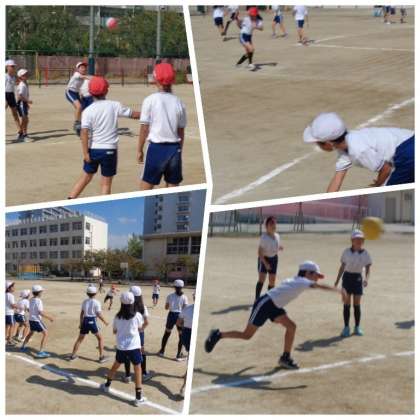 4年生が学年合同でドッジボール大会を行いました。クラス対抗での試合は白熱して、みんなでおおいに盛り上がっていました。
