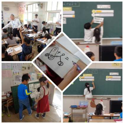 先日の6年生に続いて、1年生が授業研究会を行いました。3+9の計算の仕方について考える授業でした。子どもたちは、10のかたまりを作るための数の分解の仕方について、たくさんの意見を発表することができていました。