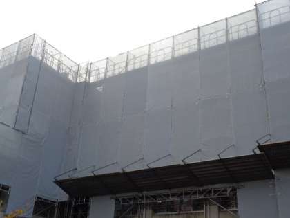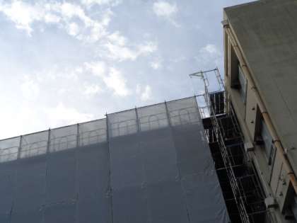 校舎正門側の壁面塗装の工事が始まりました。足場が組まれ、幕がかけられたため時計が見えなくなっています。当面は登下校等での不便等が生じます。安全面に気を配りながら、きれいになる壁面の完成を楽しみにしたいと思います。工事は2月末までの予定になっています。