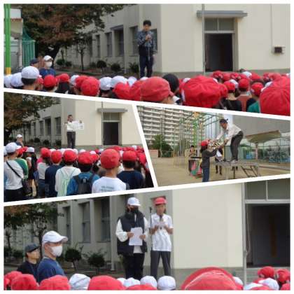 今週の朝会でも、空手の大会で優勝した3年生児童の表彰がありました。校長先生のお話は、「一心一意」の言葉を通じて、目標を立ててがんばることの大切さについてでした。そのあと、体育主任の先生から「走れ走れ週間」の説明と給食委員会からの「給食の残食調べ」のお知らせがありました。