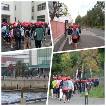 昨日と本日の2日間にわたり、株式会社アクティオさんと商船三井さんのご協力のもと、3年生と5年生が社会見学に行きました。株式会社アクティオは主に建設機器のレンタルを行っている会社です。商船三井は大阪と九州の間を運行する大型フェリー「さんふらわあ」を運営している会社です。まずは、出発から到着までの様子です。