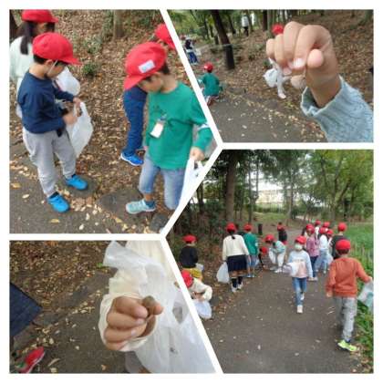 どんぐりや色づいた落ち葉など、秋を感じさせるものをたくさん見つけることができました。