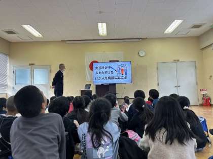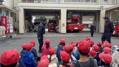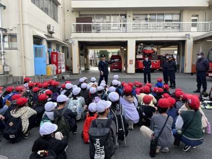 3年生が社会見学で住之江消防署に行きました。はじめに、消防署の役割や防災についてのお話を聞きました。お話のあと署内の見学をさせていただきました。