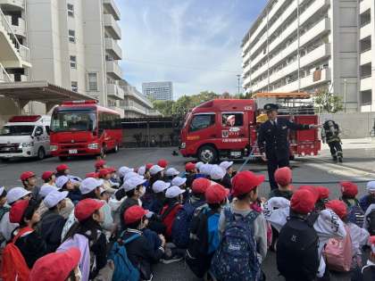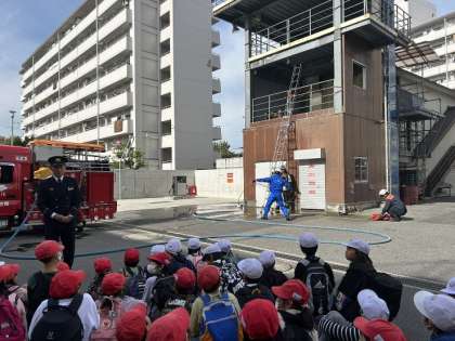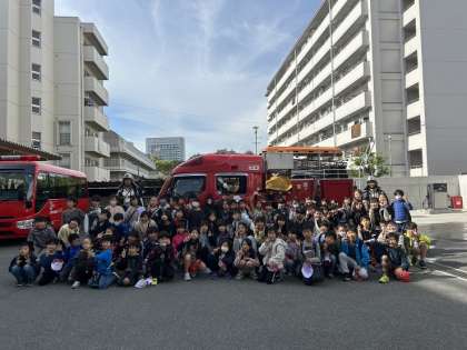 消火活動の様子を見学させていただいたあとに記念写真を撮影して、すべての活動が終了しました。