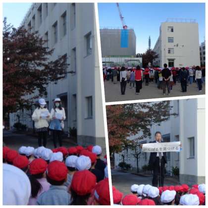 好天に恵まれたので、運動場で朝会を行いましたが。今週の校長先生のお話は「がんばるを見つける」でした。給食委員会のパン・ご飯の残食調べの結果報告のあと、係の先生からの「掃除をがんばりましょう」というお話がありました。