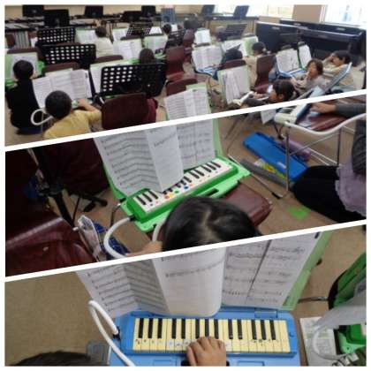 3年生が音楽の学習で鍵盤ハーモニカに取り組んでいました。演奏していたのは、ディズニーの曲のメドレーです。指づかいの複雑な部分を、繰り返し練習していました。