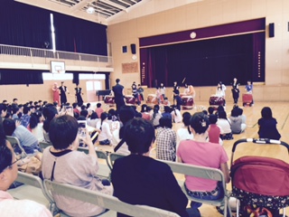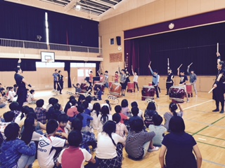 5、6年生は、親子ふれあい活動で和太鼓の体験をしました。