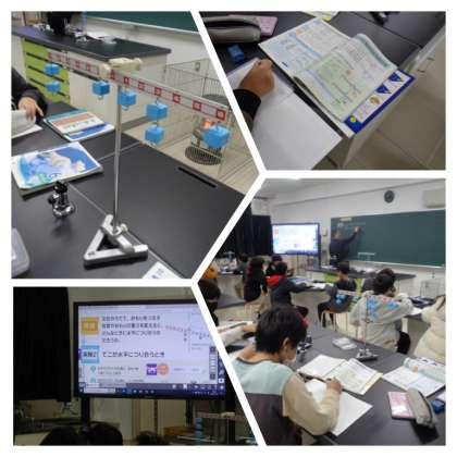 6年生が理科でてこのはたらきについて学習していました。おもりを吊り下げる場所と数を変えながら、てこが水平につり合うときのきまりについて、実験を通して検証していました。