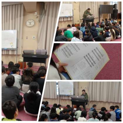 4年生が学年全体で、2月の学習参観で行う学習発表会の練習に取り組んでいました。第2音楽室で歌の練習をしていました。どのような内容になるのか、今からとても楽しみです。
