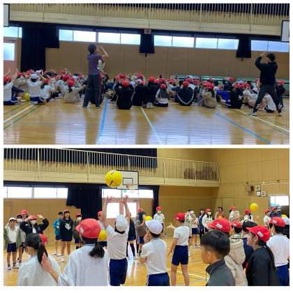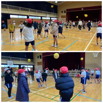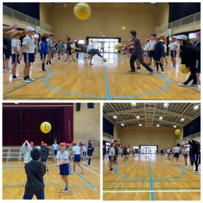 各チームに分かれ、床にボールを落とさないようにエンジンパスをし、トップの最高記録はなんと21回!!