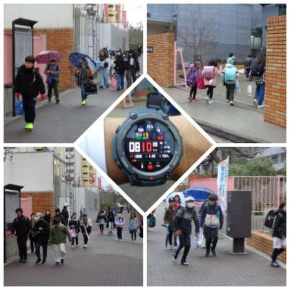 3学期に入って初めての月曜日の登校風景です。あいにくの雨模様とこの時期らしい寒さの重なった朝ですが、子どもたちは元気に登校してきました。これからしばらくは、1年のうちでもっとも寒さが厳しくなる時期になります。体調管理に気を配りながら、元気に過ごせるようにしましょう。