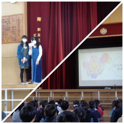 先ほどの記事にもありましたが、みんなから募集をしていた南港桜小学校のキャラクターの名前が決まりました。名前は「さくらもち」です。さくらもちの「さくら」は学校名から、「もち」にはみんなの夢がお餅のように大きく膨らみますようにという願いが込められています。とてもかわいくて素敵な名前ですね。これからはみんなで協力をして、素敵な名前とともに学校の顔として、このキャラクターを大切にしていきましょう。