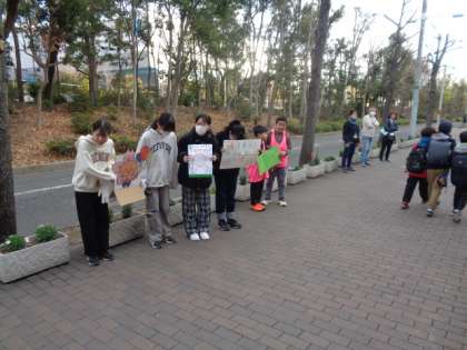 今年度のあいさつ週間も今日が最後になります。最終日のめあては「同じ学年のともだち(5人以上)とお世話になっている人にあいさつをしよう」でした。児童会のみなさん、本当に寒い中ご苦労様でした。皆さんのがんばりで、進んであいさつをする人が確実に増えてきています。あいさつは人と人とをつなぐ大切なものです。これからも「あいさつはまほうの言葉」を忘れずに、誰とでも気持ちの良いあいさつを交わすようにしましょうね。