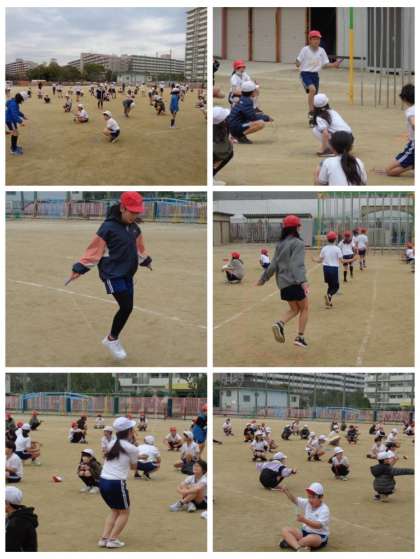 昨日に比べると急激に気温が下がり、厳しい寒さを感じる日になりました。その中でも、5年生が運動場でなわとび運動に取り組んでいました。指定された跳び方で、どれだけ跳び続けられるかにチャレンジしていました。寒さに負けずに、元気に運動に取り組んでいました。