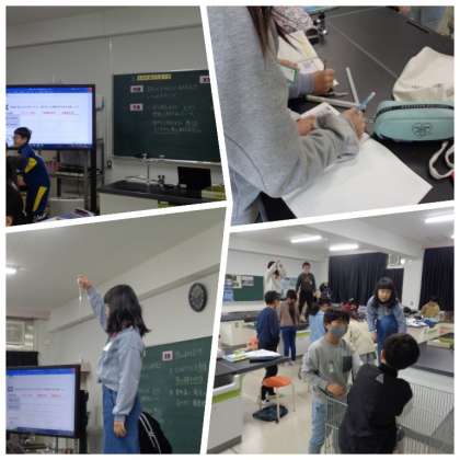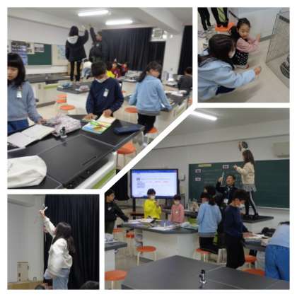 4年生が理科で「もののあたたまり方」の学習に取り組んでいました。 ストーブで暖められた教室のさまざまな場所の空気の温度を計測し、その違いからあたたまり方について考察していました。