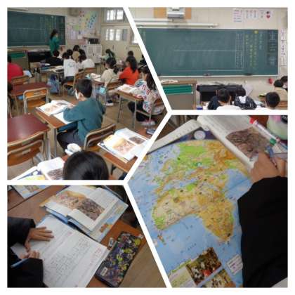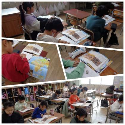3年生が国語の学習で説明文の読み取りをしていました。「ひとをつつむ形」の教材を使い、 セネガルの家の造りについて考えていました。 場面の中から人々の暮らしの様子や土地の特徴を見つけ出し、 筆者の考えを読み取る学習に取り組んでいました。