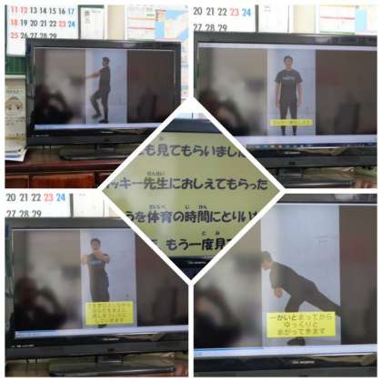 姿勢ウィーク3日目の様子です。各学級が体育の時間に取り入れるために、今年度お世話になっているガッキー先生に教えていただいた体操のビデオを観ました。良い姿勢を維持するためには、体幹の強さが大切であるということを思い出しながら、動画を鑑賞しました。