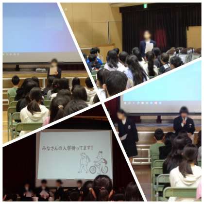 5時間目に6年生が南港北中学校の生徒会の人たちから、中学校入学後の生活の様子について紹介してもらいました。紹介動画やクイズなどを通して、楽しくわかりやすく教えてもらいました。
