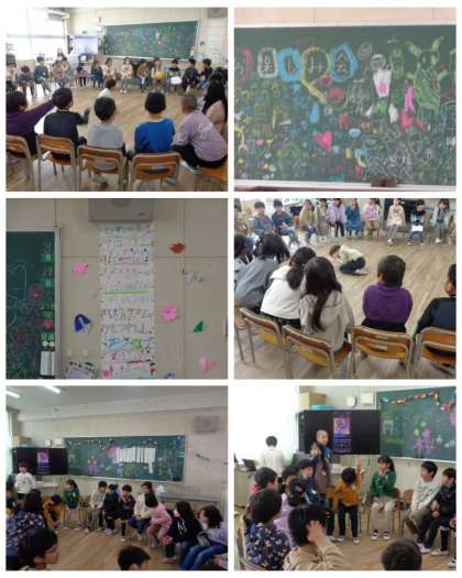 3時間目の学習の様子です。お楽しみ会で楽しんでいるクラスや、通知表をもらいながら1年の振り返りをしているクラス、運動場でみんな遊びをしている学級など、令和5年度最後の一日を思い思いに過ごしていました。