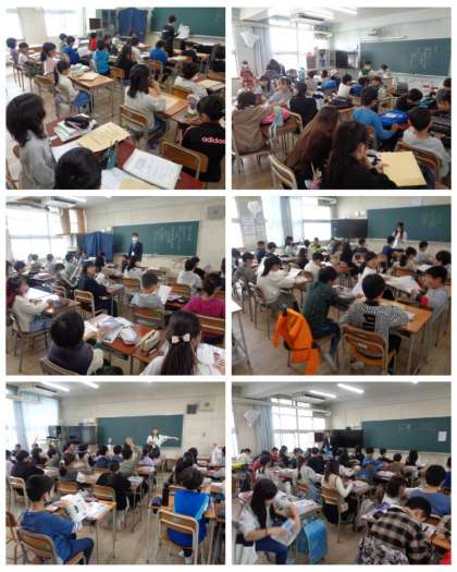 令和6年度初日の各学級の様子です。新しい教科書に名前を書いたり、配布物の整理をしたりしていました。クラス替えがあったので、自己紹介をしているクラスもありました。