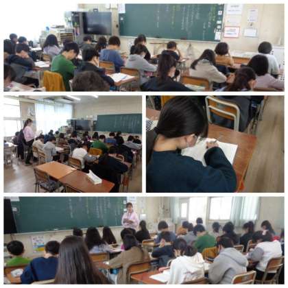 続いて6年生です。6年生は1組が国語で物語文の読み取りをしていました。2組は学級活動で新しい学級の係決めをしていました。3組も国語で、自分の考えを聞き手に正しく伝えるために大切なことを考えていました。