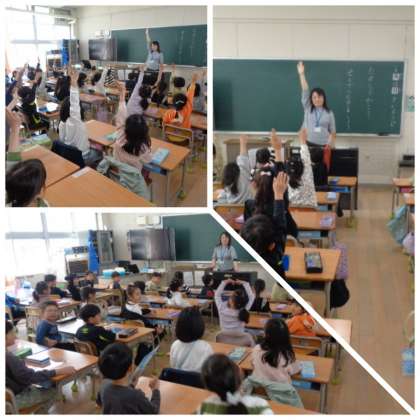 1年生の教科学習も始まっています。発表するときの約束など、学習中のきまりを確認したり、教科書を使っての学習に取り組んだりしていました。