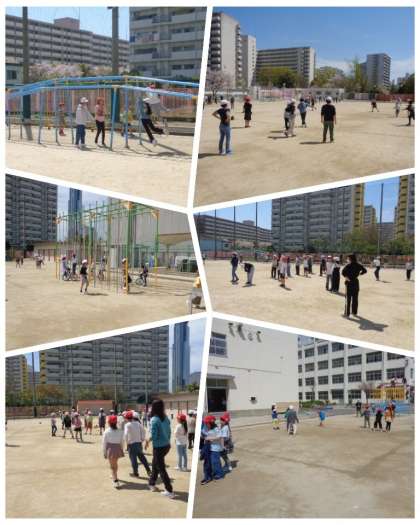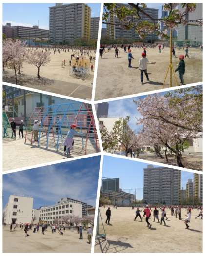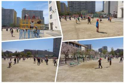 給食後の風景です。まずはお昼休みの運動場です。今日はお天気も良く、気温も上がって暖かい一日でした。そのせいか、たくさんの子どもたちが運動場に出て元気に遊んでいました。ドッジボールやバスケ、また、一輪車や遊具を使って楽しそうに過ごしていました。子どもたちと一緒に遊ぶ先生の姿もあちらこちらに見られました。