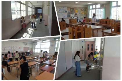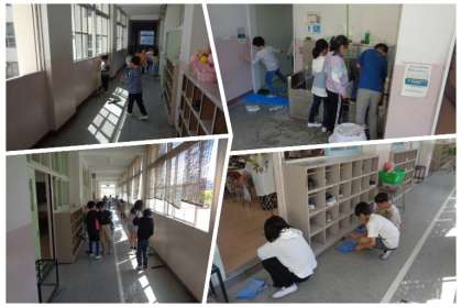 お昼休みが終わると、掃除の時間になります。清掃活動は、全クラスに場所の分担があり、みんなで協力して行います。誰もが気分よく過ごせるように、これからも力を合わせて学校をきれいにしましょう。