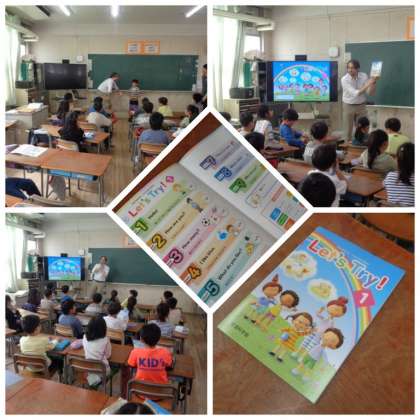 外国語によるコミュニケーションにおける見方・考え方を働かせ,外国語による聞くこと,話すことの言語活動を通して,コミュニケーションを図る素地となる資質・能力を育成することを目指す「外国語活動」の学習が3年生から始まります。写真は、C−NETの先生も交えた「外国語活動」の学習の様子です。