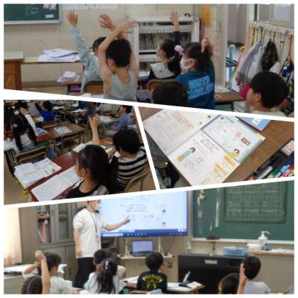 2時間目の2年生の学習の様子です。1組、2組とも算数のたし算の学習に取り組んでいました。2ケタたす2ケタの計算のひっ算や計算の仕組みなどについて考えていました。