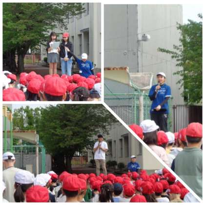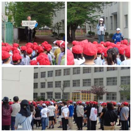 月曜日の朝は、児童朝会があります。校長先生からは、「凡事徹底」という言葉についてのお話がありました。そのあと、委員会からのお知らせが続きました。生活指導の先生からは、水辺の事故に注意をしましょうというお話があり、最後に係の先生から「あいさつの大切さ」についてのお話がありました。
